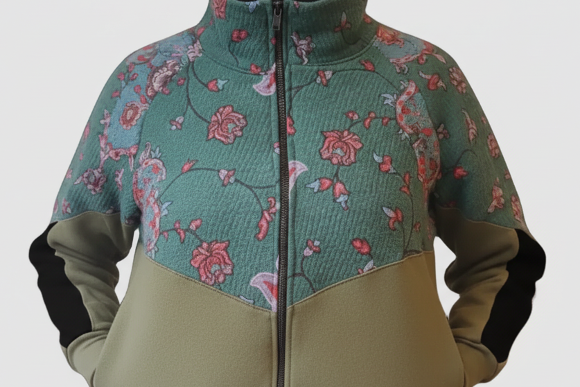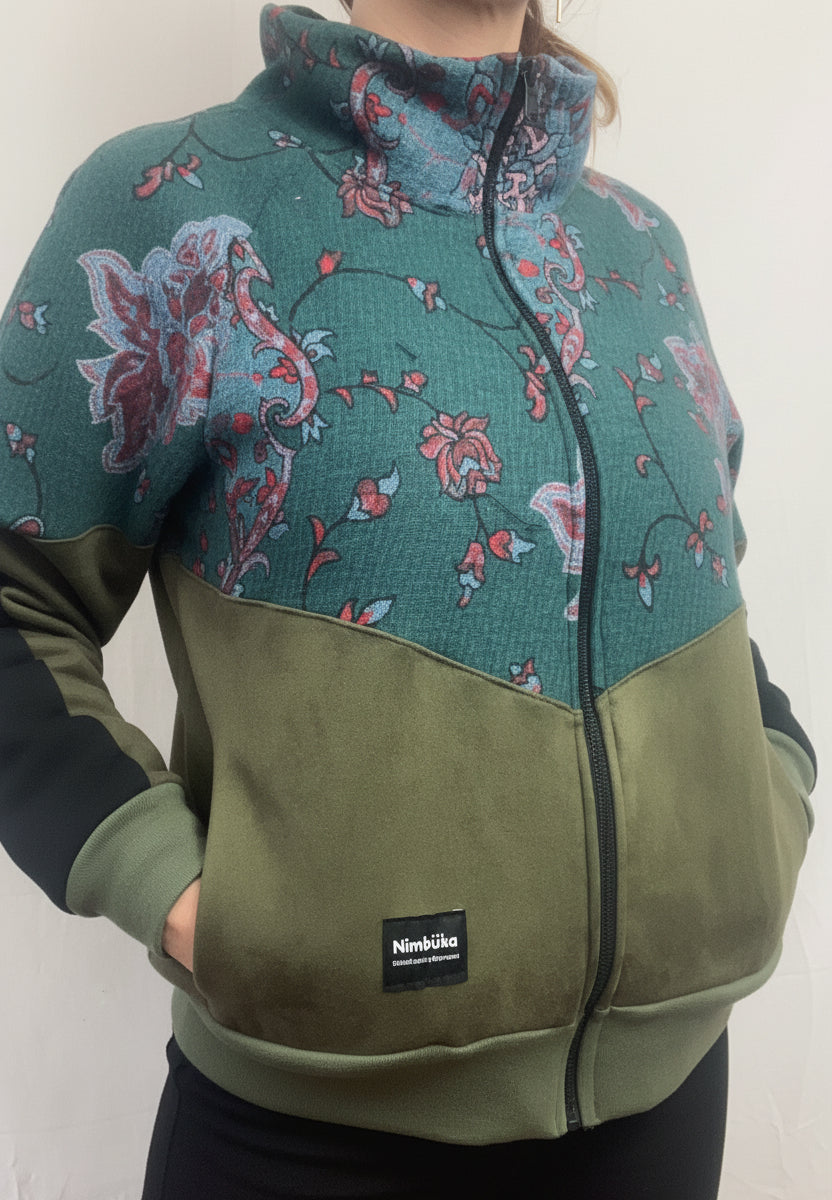Jaqueta amb teixit vintage estampat i el verd caqui té polar per dins.