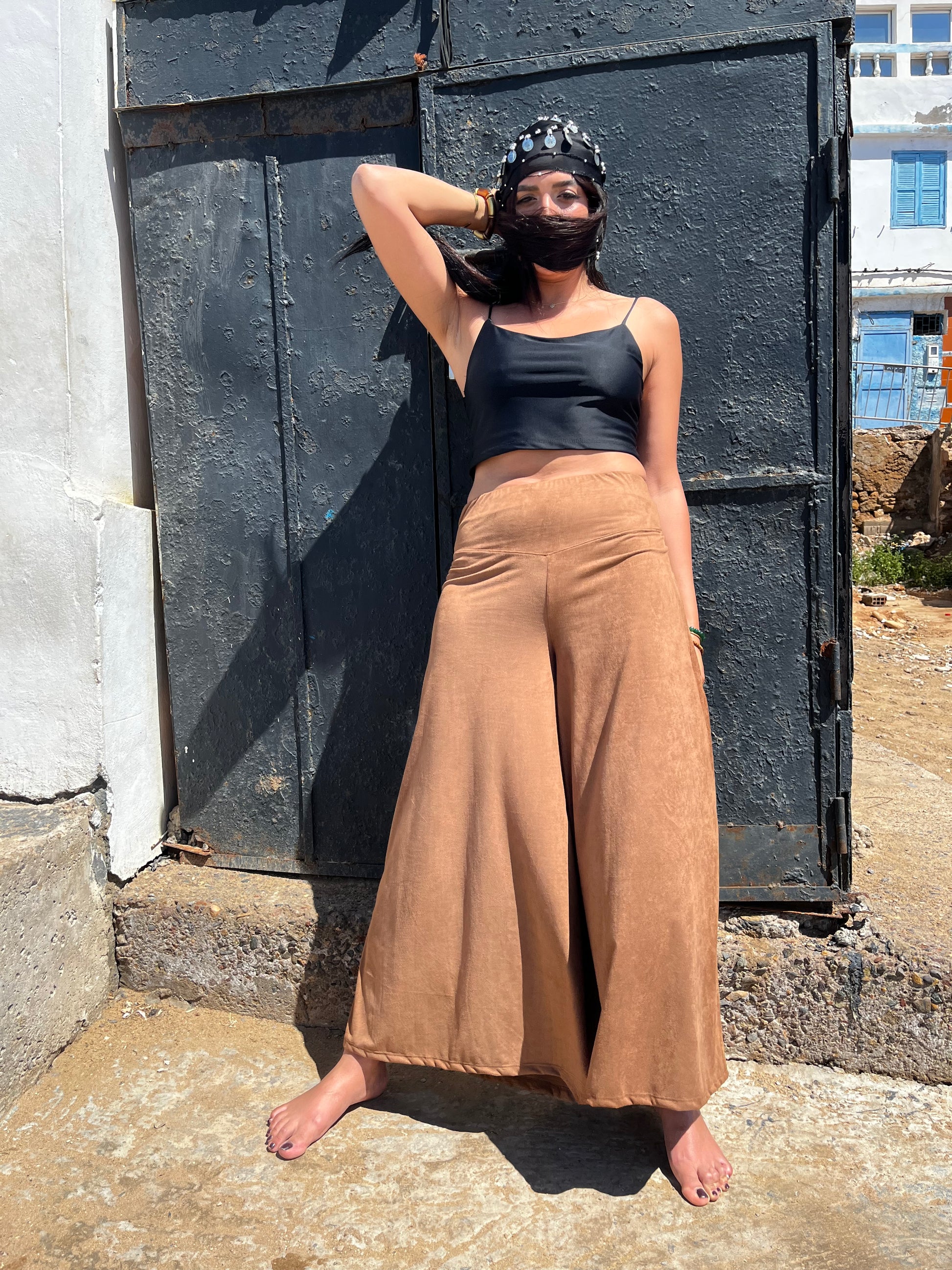Un pantalón de algodón, largo de silueta amplia y caída fluida que se mueve contigo con cada paso. Cómodo, elegante y muy fácil de combinar, es de esas prendas que te acompañan todo el día.