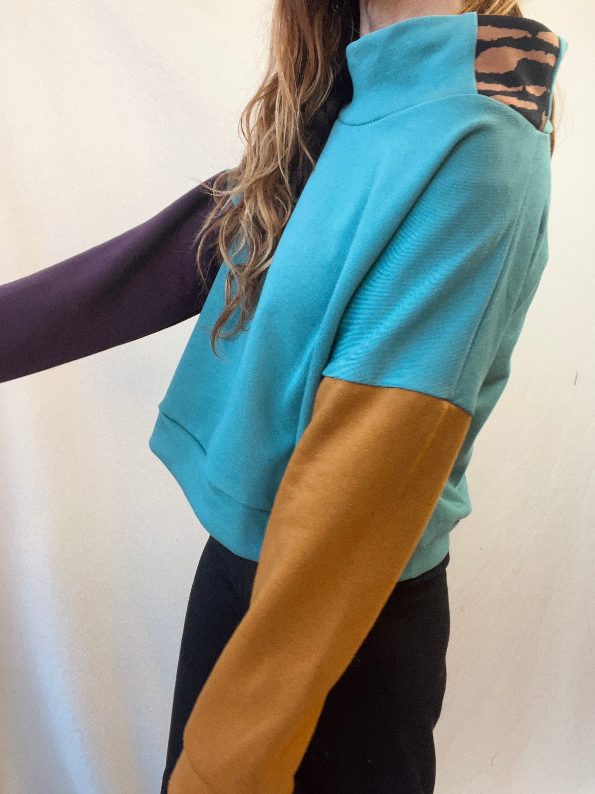 Cada jersey está hecho con una combinación única de colores —una manga de cada tono— y detalle en cuello con aplique de cebra color tierra y negro