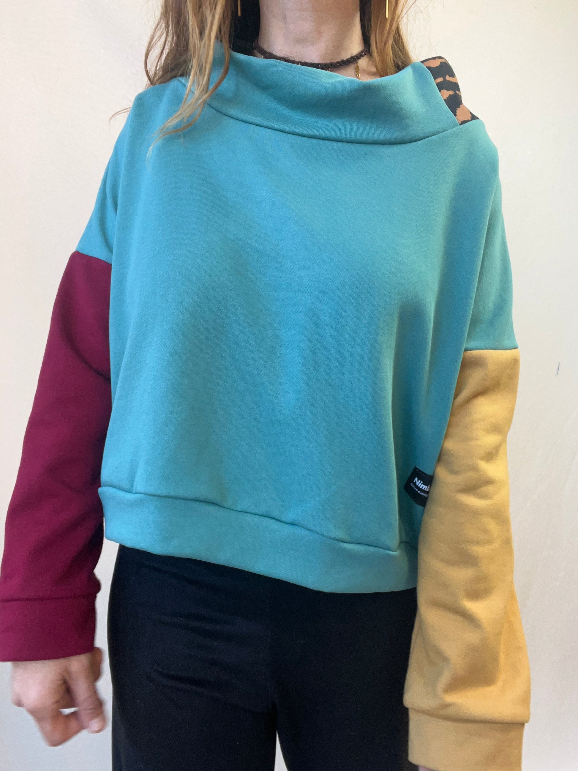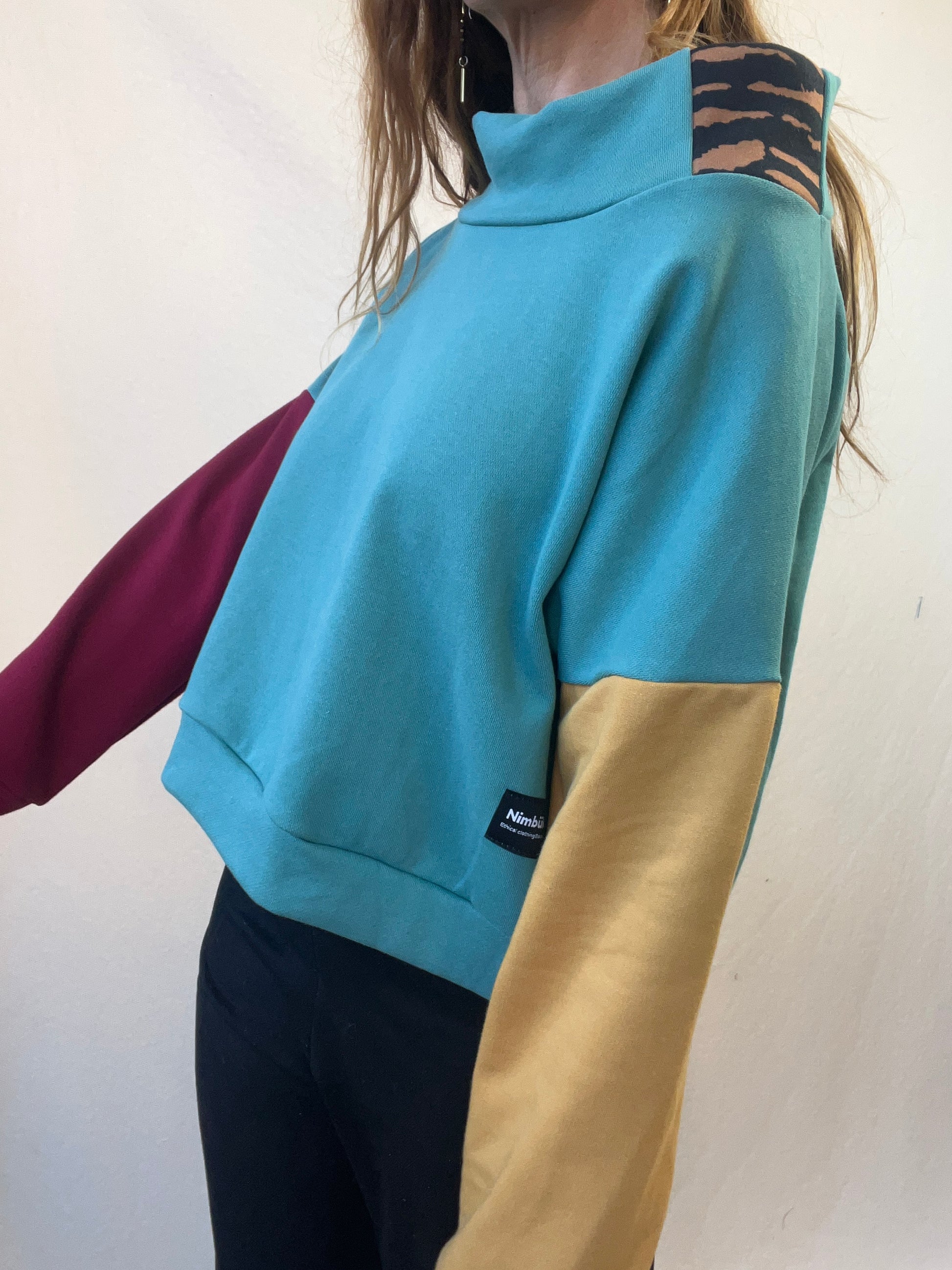 Cada jersey está hecho con una combinación única de colores —una manga de cada tono— y detalle en cuello con aplique de cebra color tierra y negro